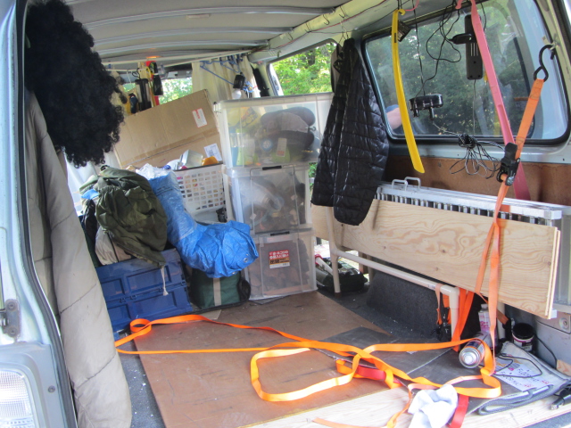 アルゴさんの車の中です。なんじゃこりゃ!てぐらいのキャンプ道具の量!