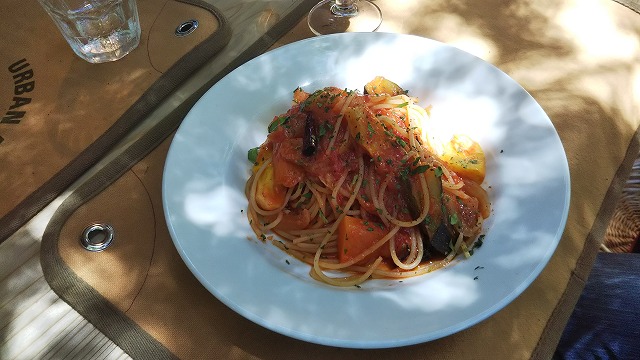 蓼科ビレッジの薪窯料理と山歩きの店スイッチバックでランチ。風通しの良いテラスに案内されて夏野菜がおいしいお店でまったり。たくぞうさんの料理が来ない。