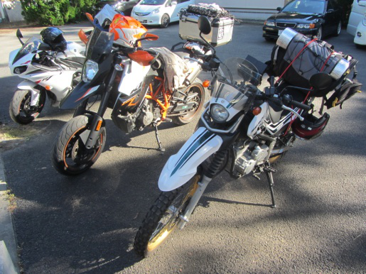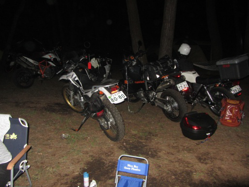 そして、しゅうさんのバイクを見ると妙に荷物が少ない…何やら明日急に仕事になってしまったようで、本日のみの参加。幹事なので企画したルートを先導し、キャンプ場まで案内したらそのまま帰宅とのこと…(これまた残念)