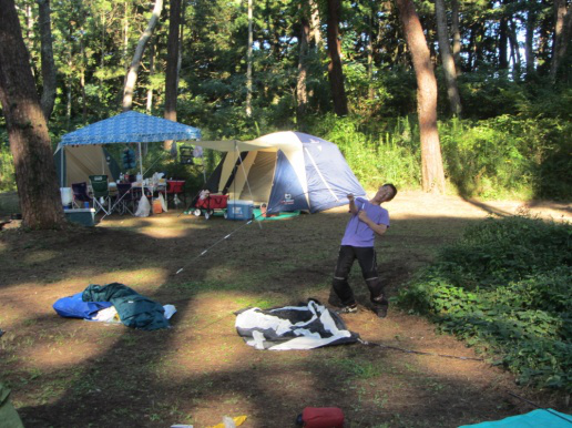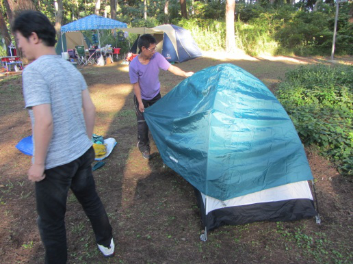 何とか空いている場所を確保し、設営開始です!(キャンプ難民になるところでした…(汗))