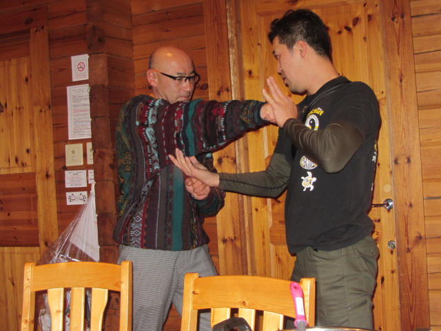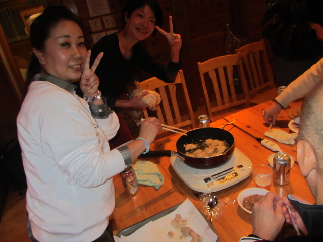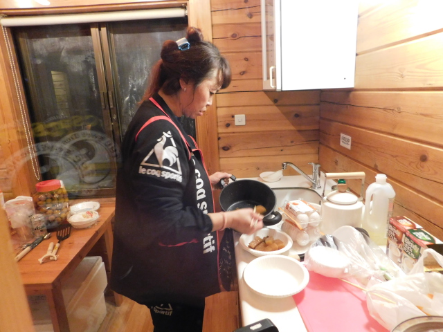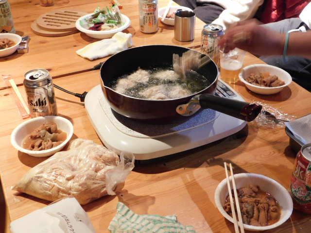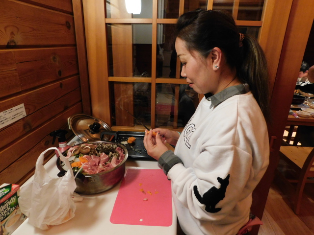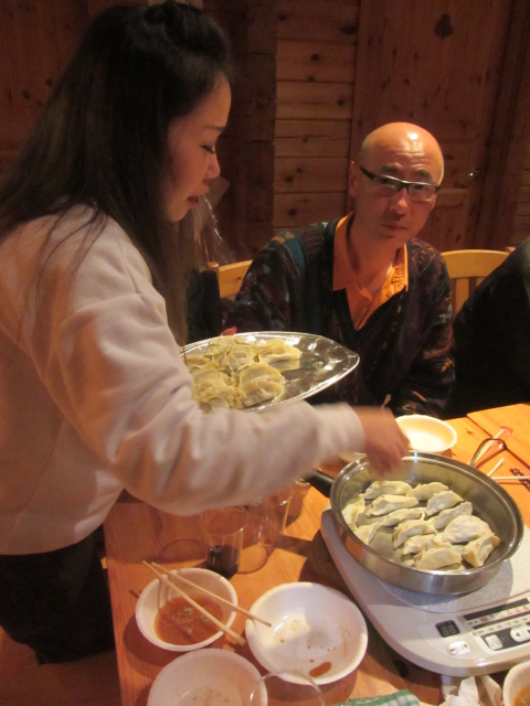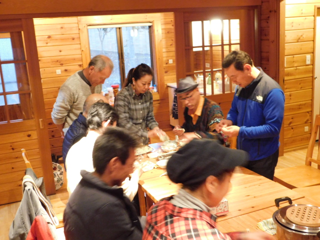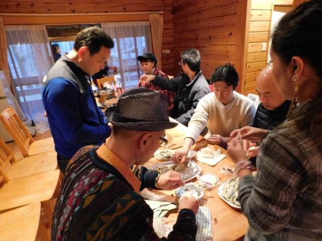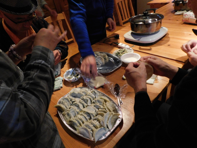 チェックインの手続き終えたら恒例の机とイスの移動、そして今年は餃子包み!!意外と不器用なtunaさん