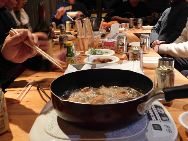 そしてお決まりの唐揚げ。今回は手羽先の山ちゃん風味付けと普通の味の2味用意してみました。
