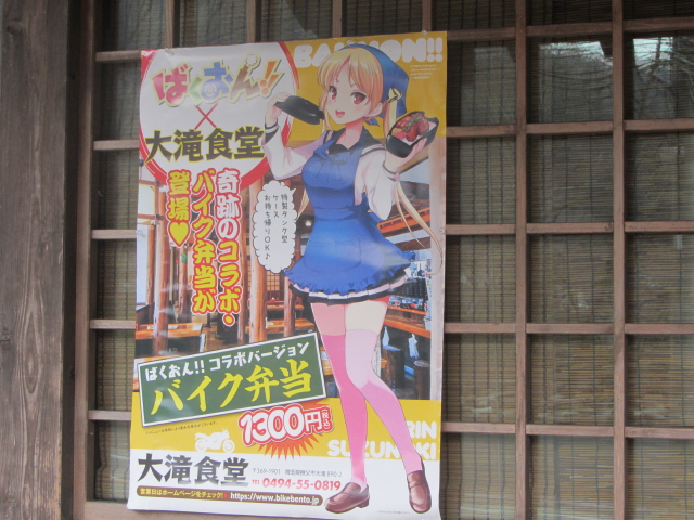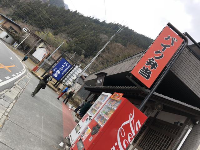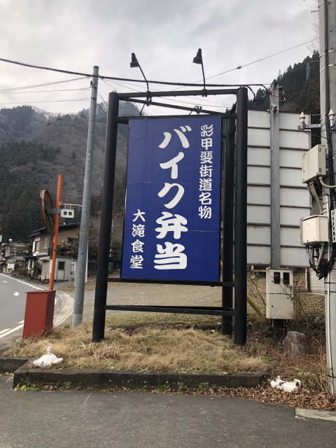 まずは道の駅「大滝温泉」で車を2台に乗り合わせにし、「バイク弁当大滝食堂」へ。開店前から並んでいる