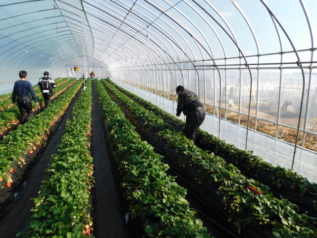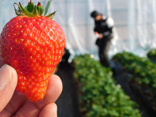 そんな中、おじさん連中がいちごを頬張り「うまい、うまい」連呼