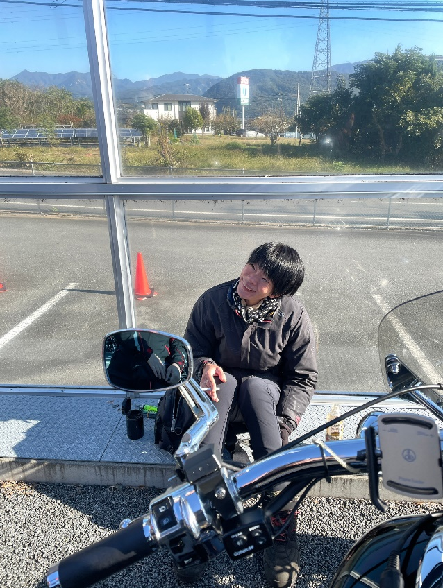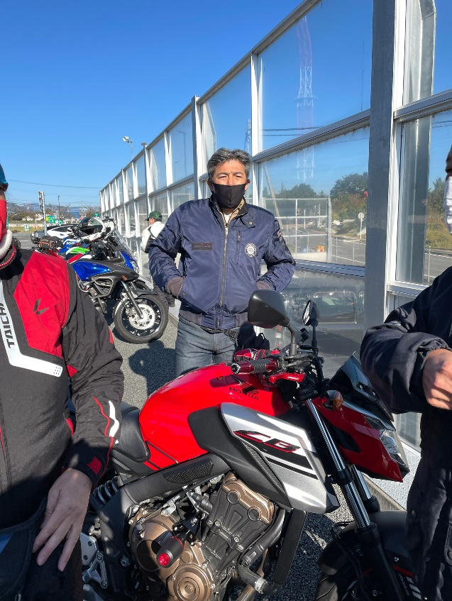 が、なんと不覚にもここで私がTGK(本日二人目)。舗装路から砂利の駐車場に入った途端に右側にTGK。いまだにTGKした理由がわかりません。ブレーキレバーとハンドルの先端、マフラーに傷が付いてしまいました。