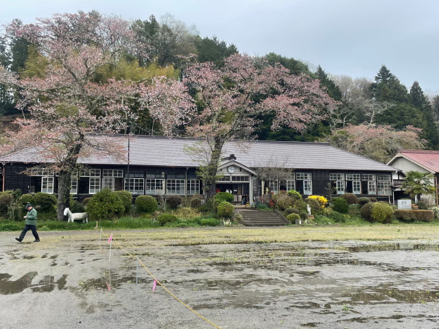 校舎前に立派な桜の木があるのですが、私たちが訪れた時は散ってしまった後でした。残念…(泣)