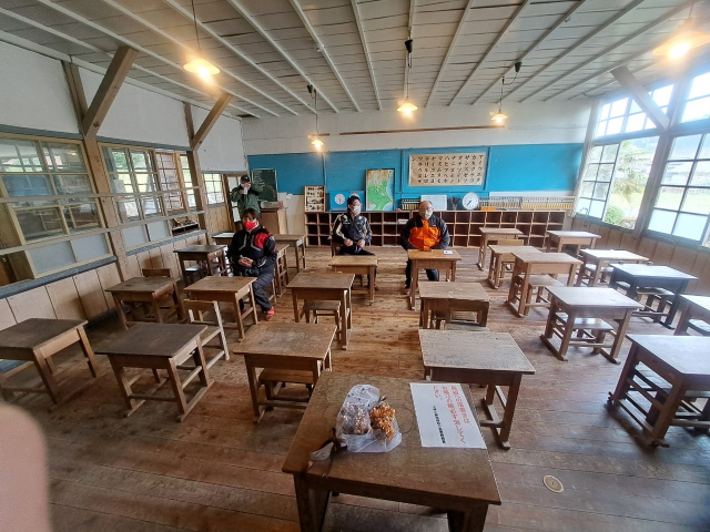 旧上岡小学校へ到着です!