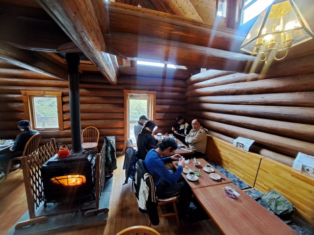 次のお店もバイク乗りのご主人のお店で、山小屋風のお店をご自身で作り上げたそうです!